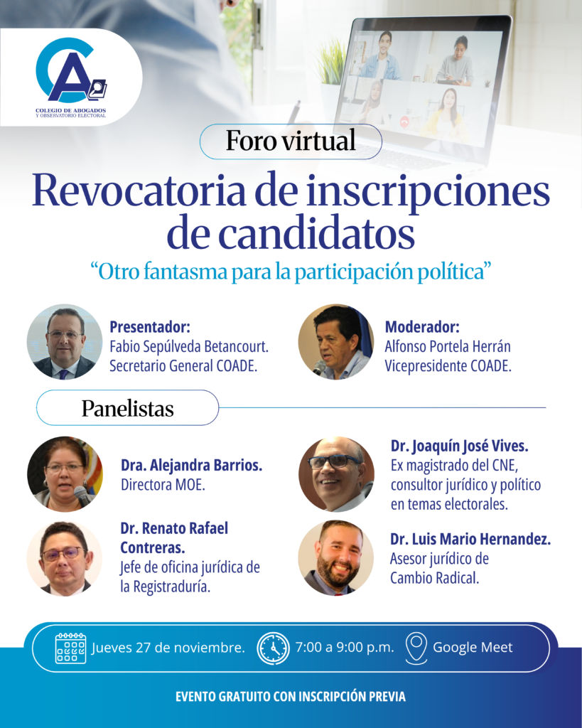 El lanzamiento de esta página web, representa un hito significativo en el compromiso continuo del Colegio Electoral COADE Observatorio Electoral, por promover la educación cívica y el conocimiento en materia electoral. A través de este medio, buscamos consolidar un espacio inclusivo y participativo que fortalezca la conciencia democrática en la sociedad colombiana.”